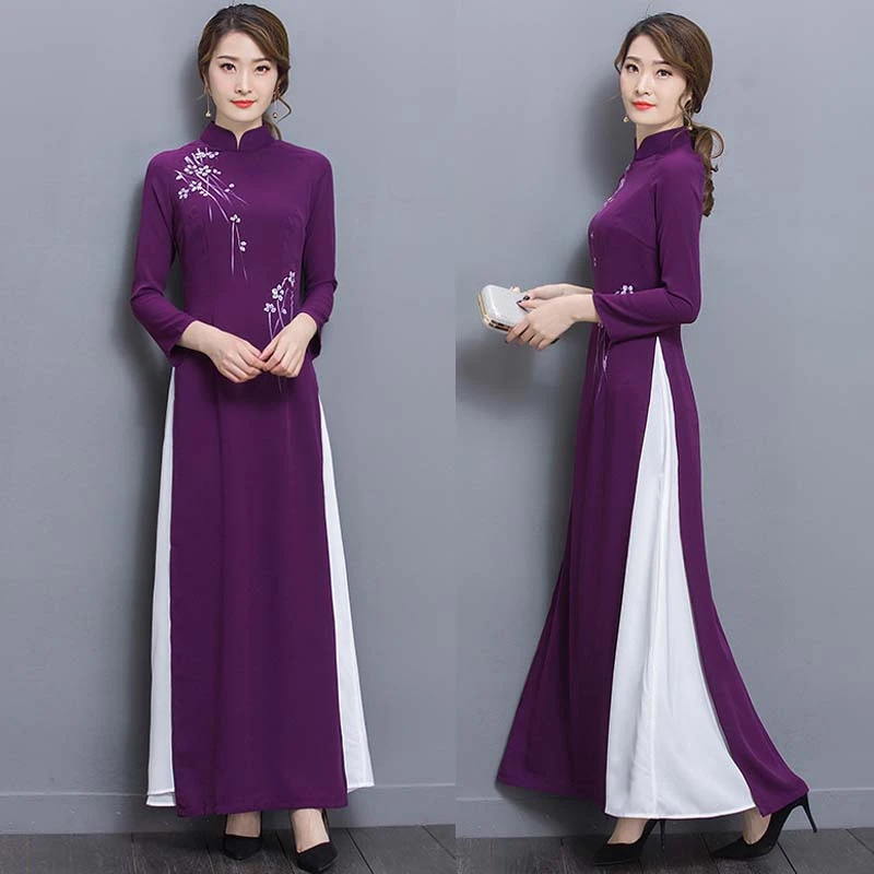 Vietnam Womens Vintage Dress New 2019 Purple Chinese Traditional Dress Vietnam Ao Dai Collar Long Sleeve Connotation Dress Dresses Aliexpress